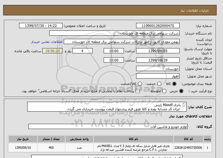 نام دستگاه خریدار:شرکت سهامی برق منطقه ای خوزستان