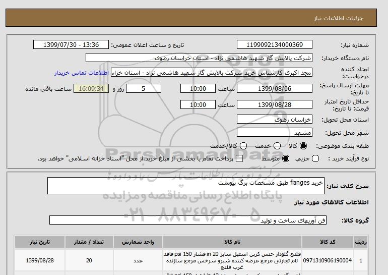 شرح کلی نیاز: خرید flanges طبق مشخصات برگ پیوست