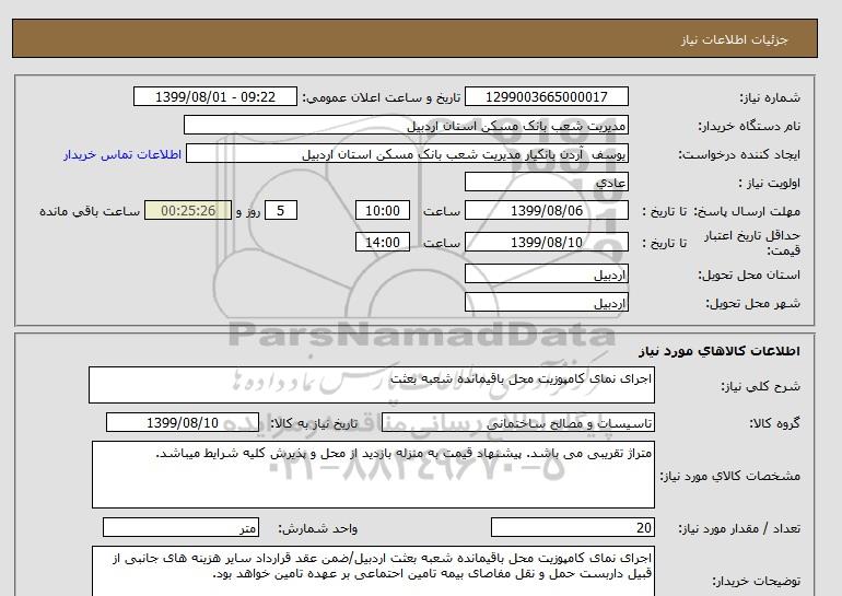 نام دستگاه خریدار:مدیریت شعب بانک مسکن استان اردبیل