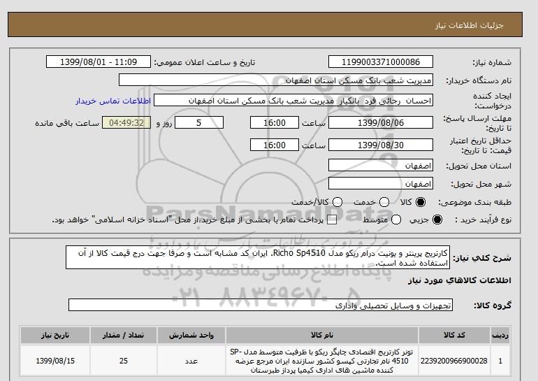نام دستگاه خریدار:مدیریت شعب بانک مسکن استان اصفهان