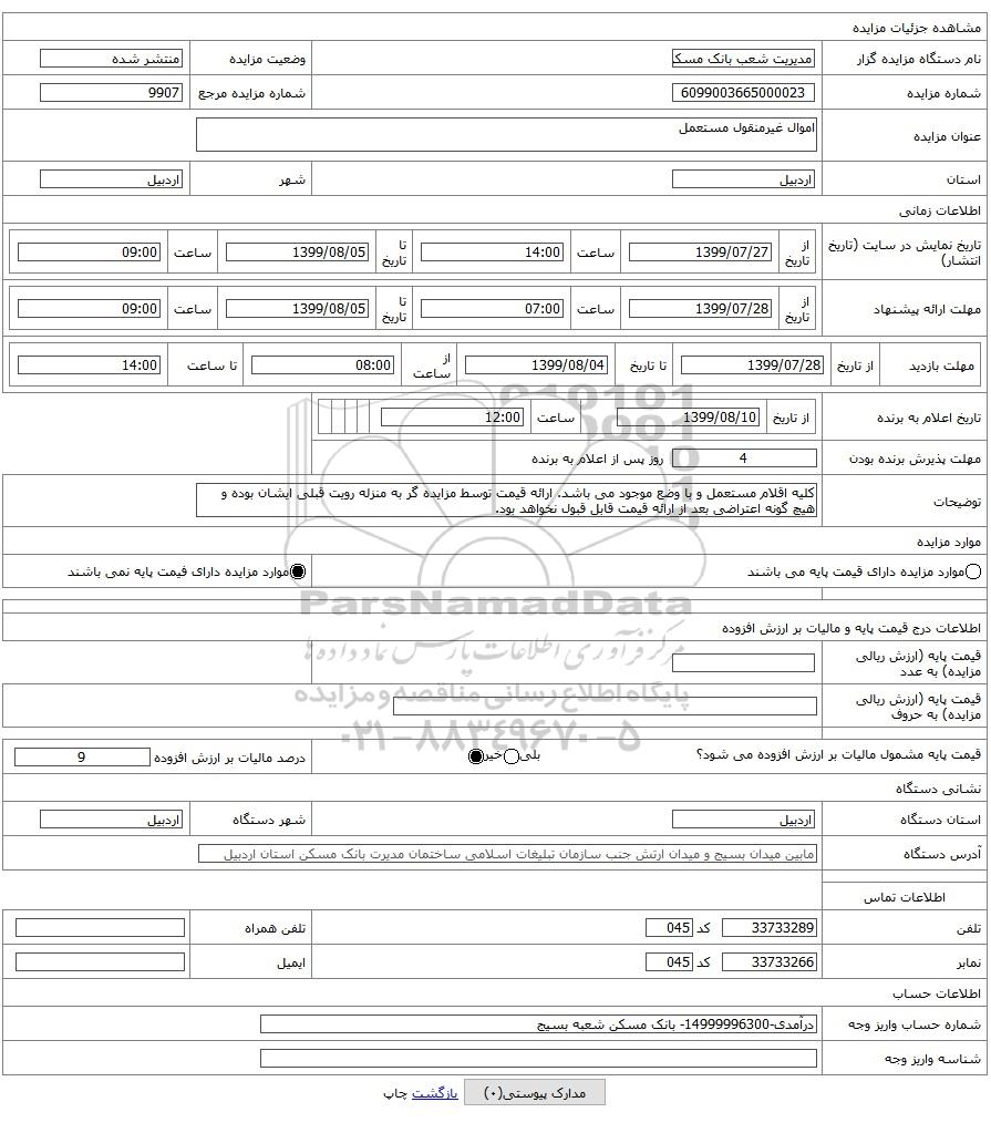 شماره مزایده | 6099003665000023 | شماره مزایده مرجع | 9907 | |