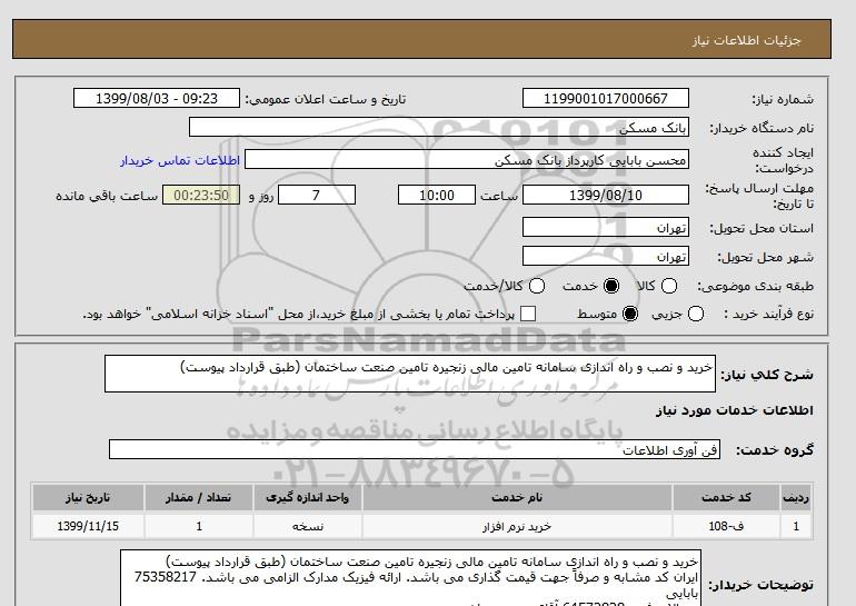 شرح کلی نیاز: خرید و نصب و راه اندازی سامانه تامین مالی زنجیره تامین صنعت ساختمان (طبق قرارداد پیوست)