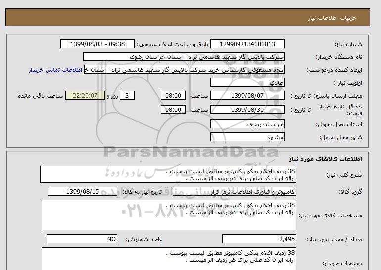 نام دستگاه خریدار:شرکت پالایش گاز شهید هاشمی نژاد - استان خراسان رضوی