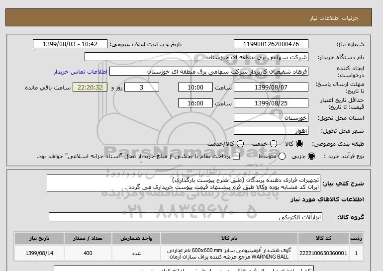نام دستگاه خریدار:شرکت سهامی برق منطقه ای خوزستان