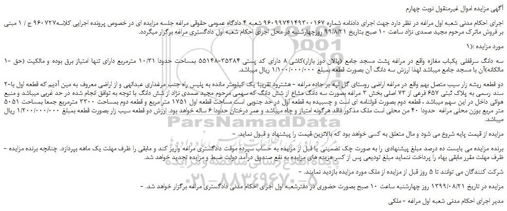 آگهی مزایده اموال غیرمنقول نوبت چهارم