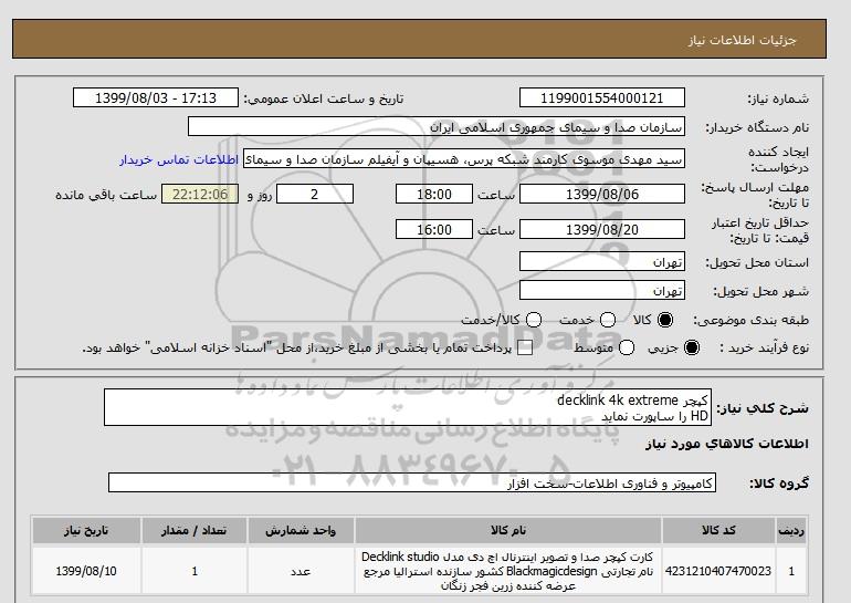 نام دستگاه خریدار:سازمان صدا و سیمای جمهوری اسلامی ایران