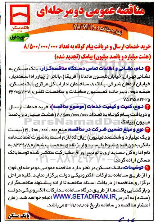 خرید خدمات ارسال و دریافت پیام کوتاه به تعداد 8.500.000.000 (هشت میلیارد و پانصد میلیون) پیامک  (تجدید شده)
