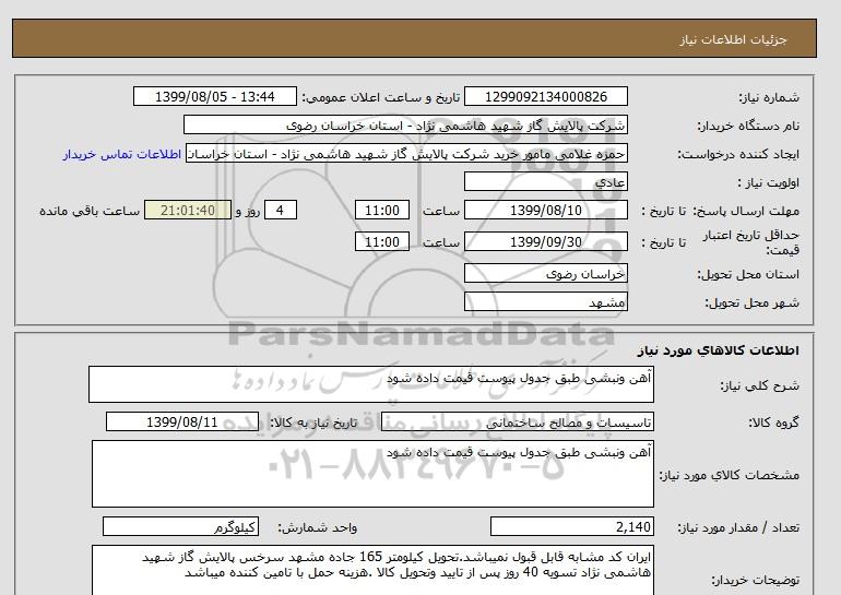 نام دستگاه خریدار:شرکت پالایش گاز شهید هاشمی نژاد - استان خراسان رضوی