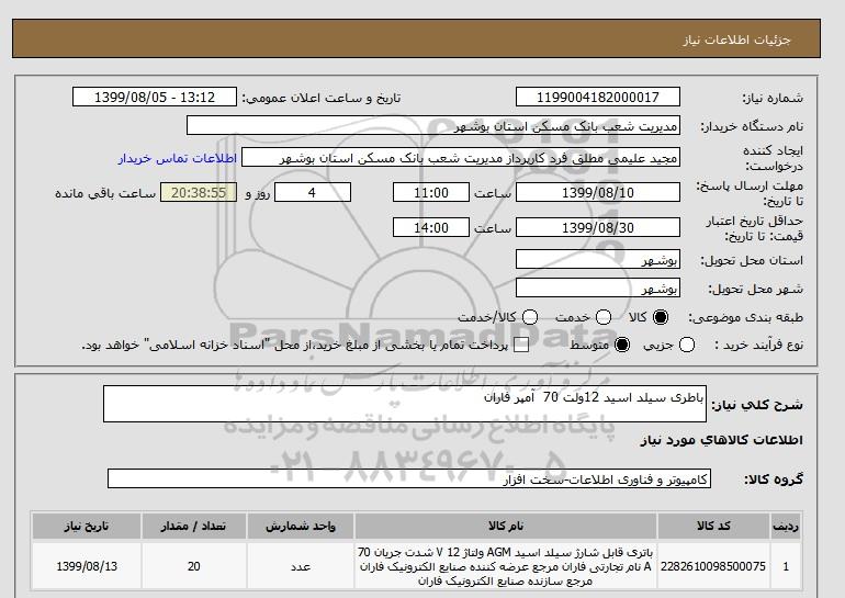 استعلام باطری سیلد اسید 12ولت 70 آمپر فاران , استعلام باطری سیلد اسید 12ولت 70 آمپر فاران