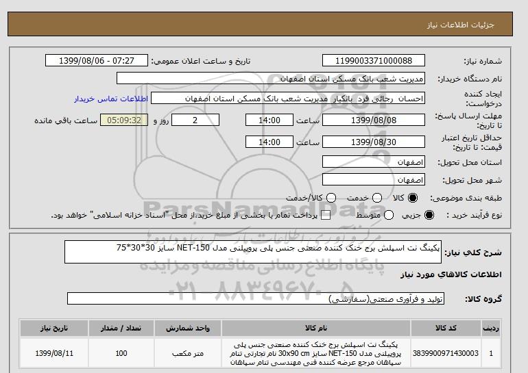 نام دستگاه خریدار:مدیریت شعب بانک مسکن استان اصفهان