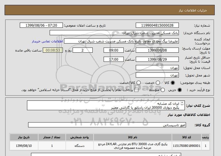 نام دستگاه خریدار:بانک مسکن مدیریت شعب شرق تهران