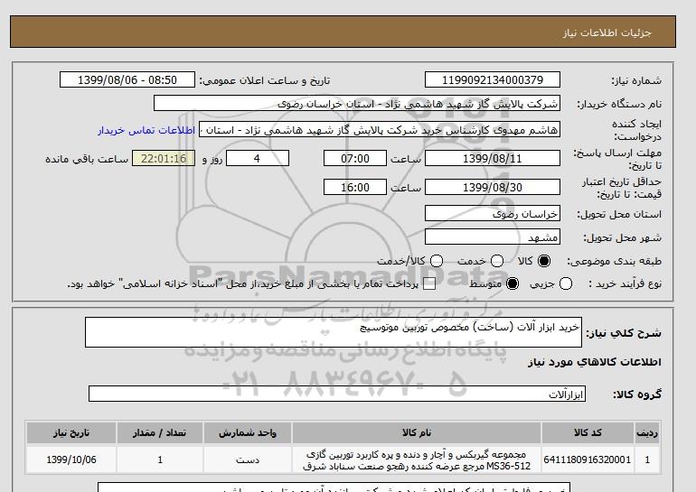 نام دستگاه خریدار:شرکت پالایش گاز شهید هاشمی نژاد - استان خراسان رضوی