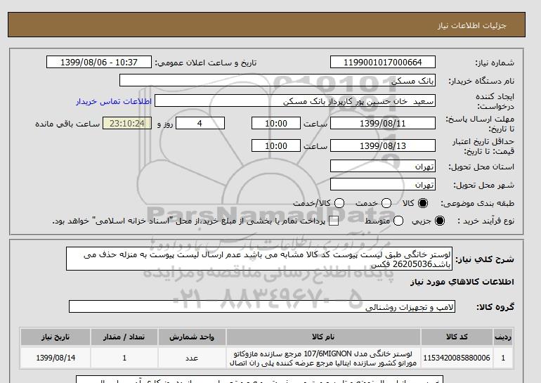 استعلام لوستر خانگی طبق لیست پیوست کد کالا مشابه می باشد عدم ارسال لیست پیوست به منزله حذف می باشد26205036 فکس, استعلام لوستر خانگی طبق لیست پیوست کد کالا مشابه می باشد عدم ارسال لیست پیوست به منزله حذف می باشد26205036 فکس