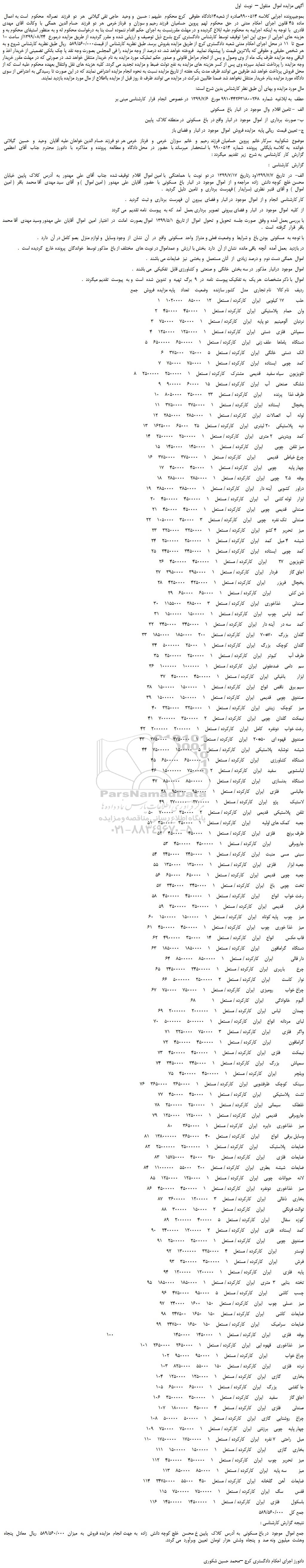 ج- تعیین قیمت ریالی پایه مزایده فروش اموال موجود در انبار و فضای باز
