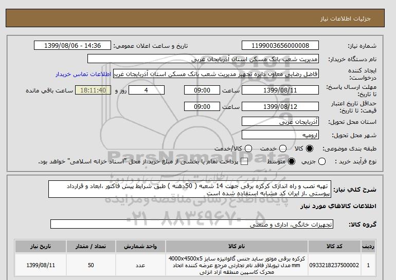 نام دستگاه خریدار:مدیریت شعب بانک مسکن استان آذربایجان غربی