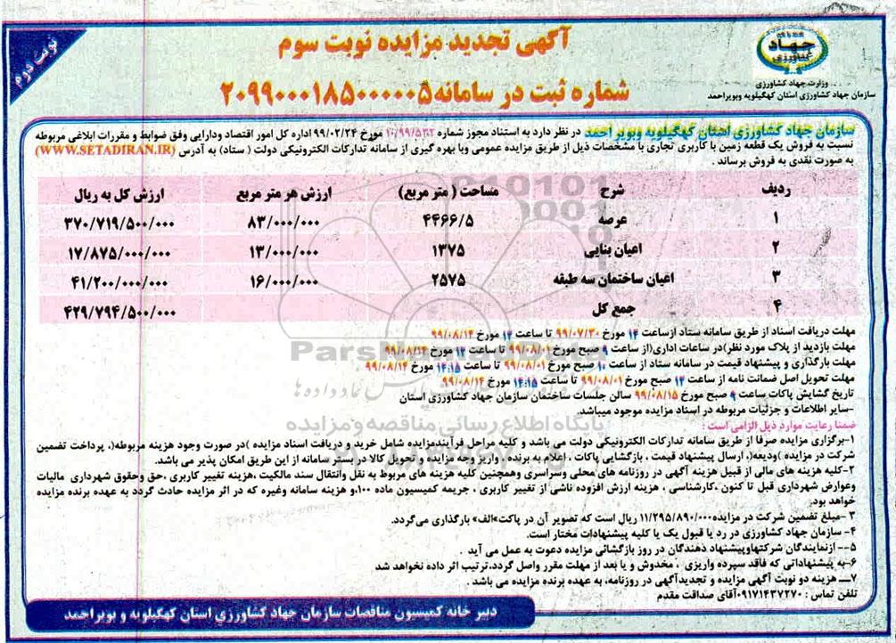 مزایده،مزایده فروش یک قطعه زمین با کاربری تجاری نویت سوم