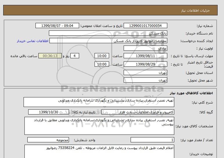 مشخصات کالای مورد نیاز: تهیه, نصب, استقرار, پیاده سازی, پشتیبانی و نگهداری سامانه بانکداری ویدئویی مطابق با قرارداد پیوستی