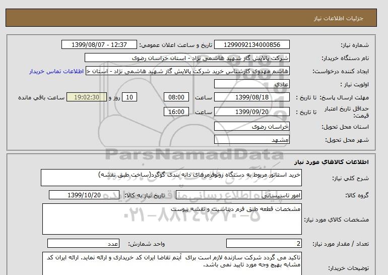 نام دستگاه خریدار:شرکت پالایش گاز شهید هاشمی نژاد - استان خراسان رضوی