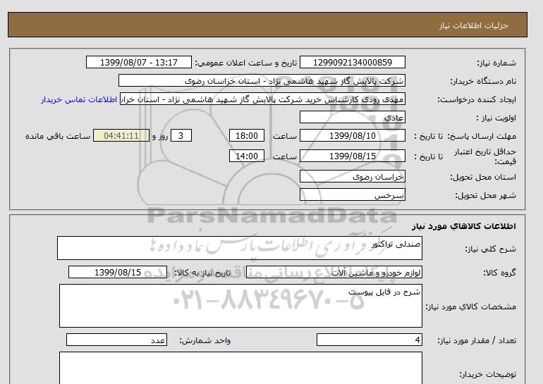 نام دستگاه خریدار:شرکت پالایش گاز شهید هاشمی نژاد - استان خراسان رضوی