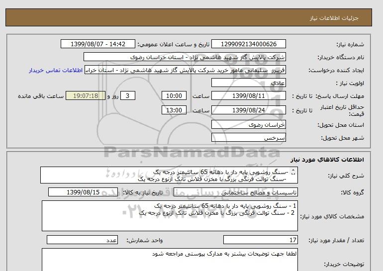 نام دستگاه خریدار:شرکت پالایش گاز شهید هاشمی نژاد - استان خراسان رضوی