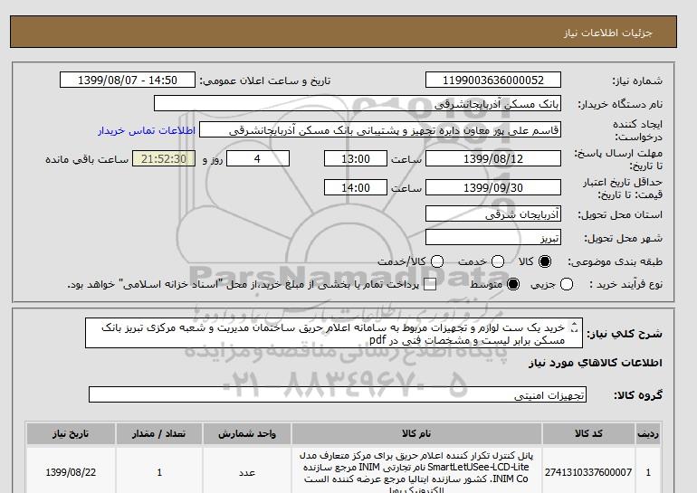 نام دستگاه خریدار:بانک مسکن آذربایجانشرقی