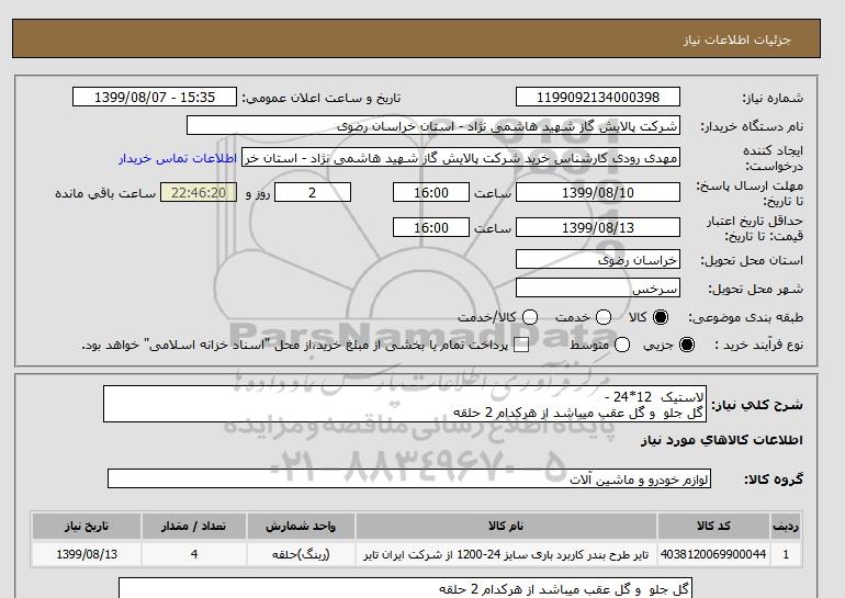نام دستگاه خریدار:شرکت پالایش گاز شهید هاشمی نژاد - استان خراسان رضوی