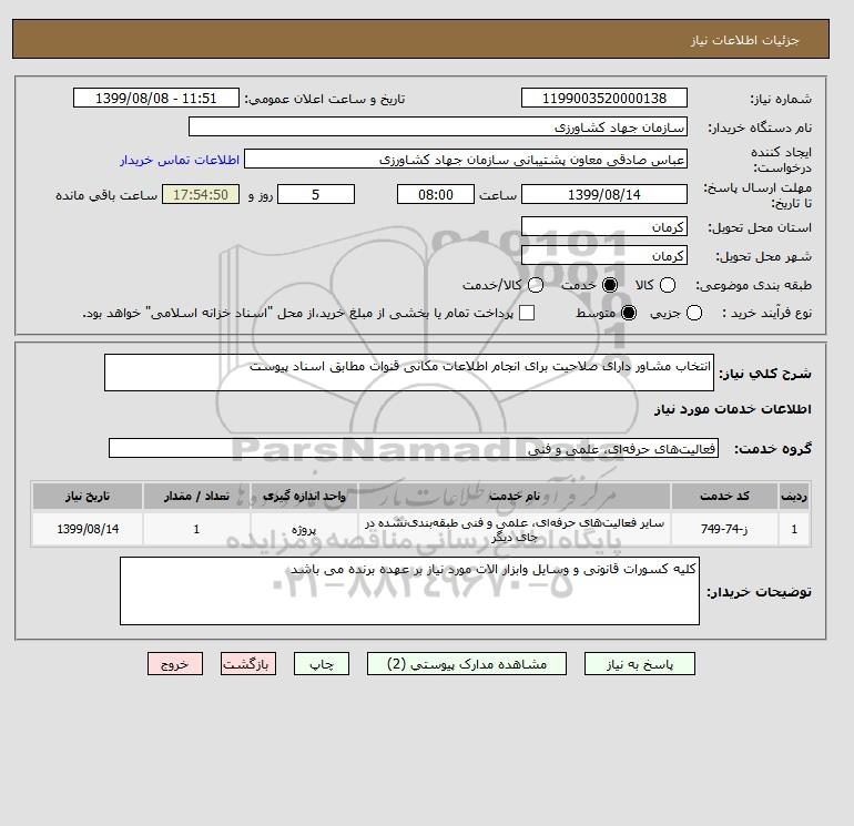 شرح کلی نیاز: انتخاب مشاور دارای صلاحیت برای انجام اطلاعات مکانی قنوات مطابق اسناد پیوست