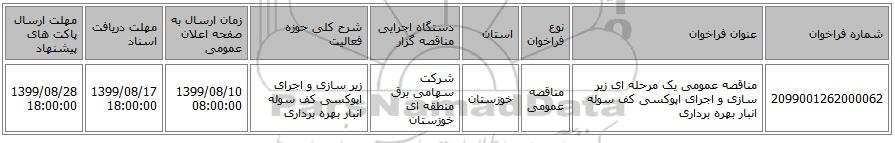 مناقصه، مناقصه عمومی یک مرحله ای زیر سازی و اجرای اپوکسی کف سوله انبار بهره برداری , مناقصه عمومی یک مرحله ای زیر سازی و اجرای اپوکسی کف سوله انبار بهره برداری