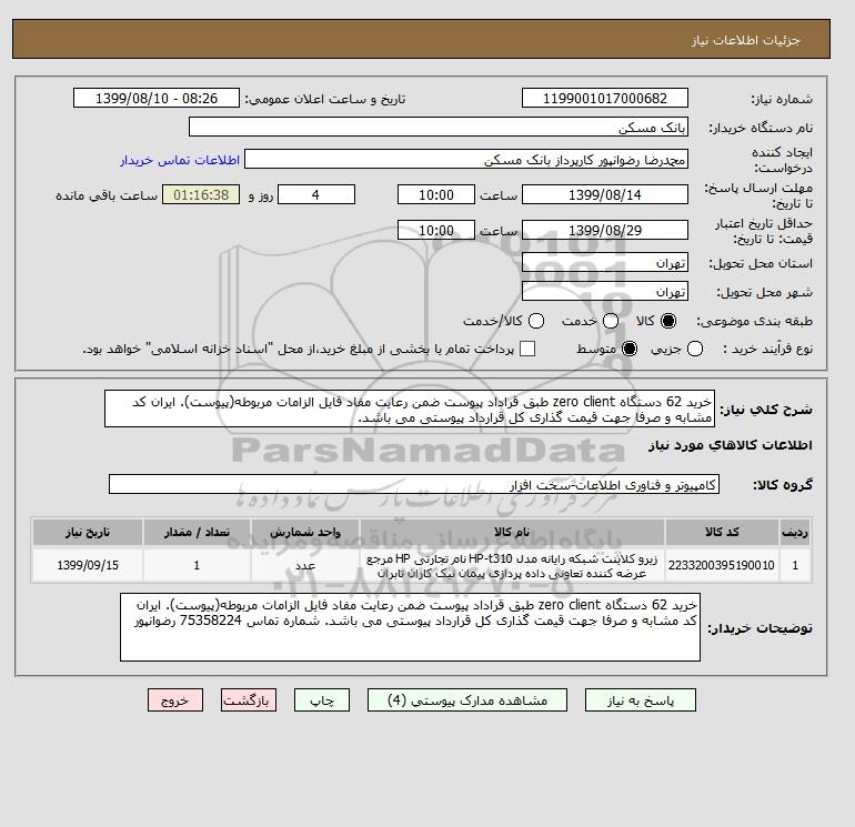 توضیحات خریدارخرید 62 دستگاه zero client طبق قراداد پیوست ضمن رعایت مفاد فایل الزامات مربوطه(پیوست). ایران کد مشابه و صرفا جهت قیمت گذاری کل قرارداد پیوستی می باشد. شماره تماس 75358224 رضوانپور