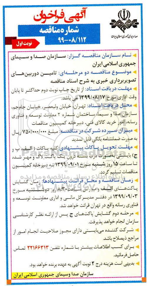 - موضوع مناقصه دو مرحله ای: تامین دوربین های تصویربرداری خبری به شرح اسناد مناقصه