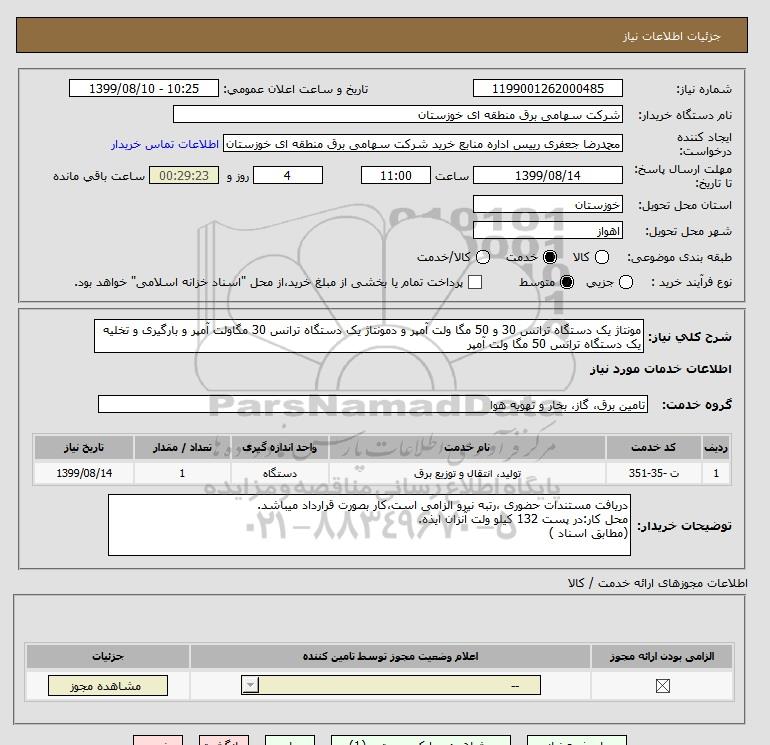 استعلام مونتاژ یک دستگاه ترانس 30 و 50 مگا ولت آمپر و دمونتاژ یک دستگاه ترانس 30 مگاولت آمپر و بارگیری و تخلیه یک دستگاه ترانس 50 مگا ولت آمپر , استعلام مونتاژ یک دستگاه ترانس 30 و 50 مگا ولت آمپر و دمونتاژ یک دستگاه ترانس 30 مگاولت آمپر و بارگیری و تخلیه یک دستگاه ترانس 50 مگا ولت آمپر