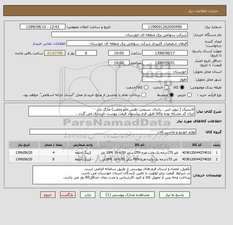 نام دستگاه خریدار:شرکت سهامی برق منطقه ای خوزستان