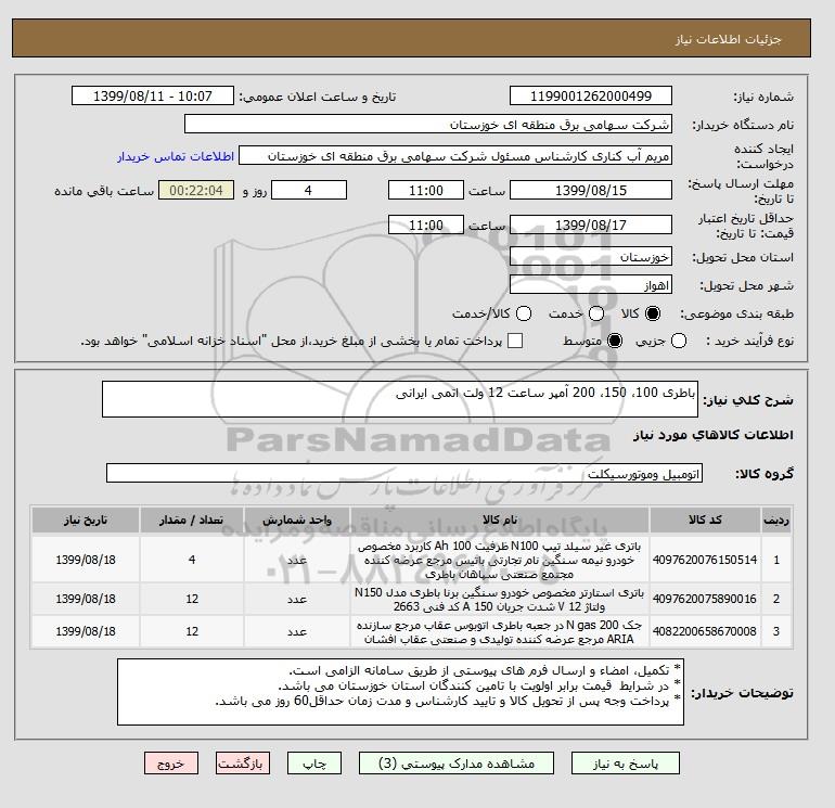 شرح کلی نیاز: باطری 100، 150، 200 آمپر ساعت 12 ولت اتمی ایرانی