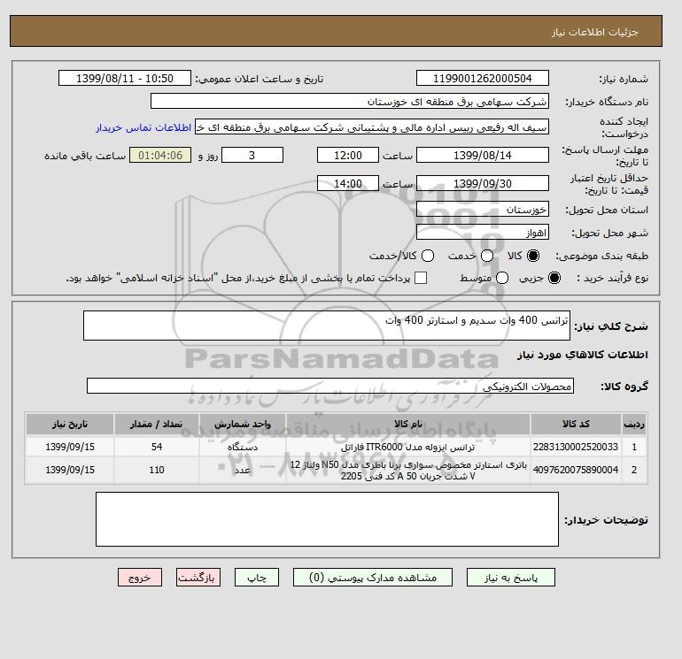 نام دستگاه خریدار:شرکت سهامی برق منطقه ای خوزستان