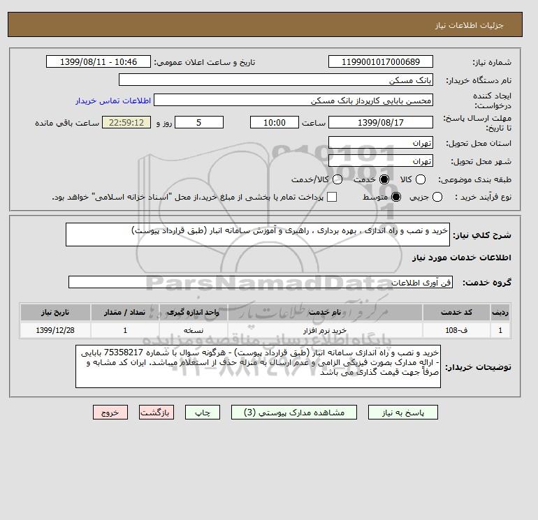 شرح کلی نیاز: خرید و نصب و راه اندازی ، بهره برداری ، راهبری و آموزش سامانه انبار (طبق قرارداد پیوست)