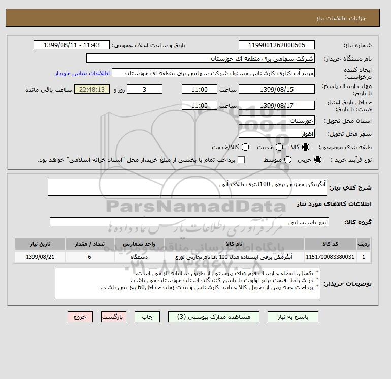 نام دستگاه خریدار:شرکت سهامی برق منطقه ای خوزستان