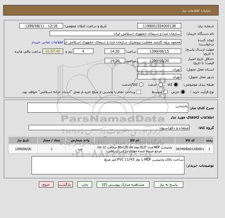 نام دستگاه خریدار:سازمان صدا و سیمای جمهوری اسلامی ایران
