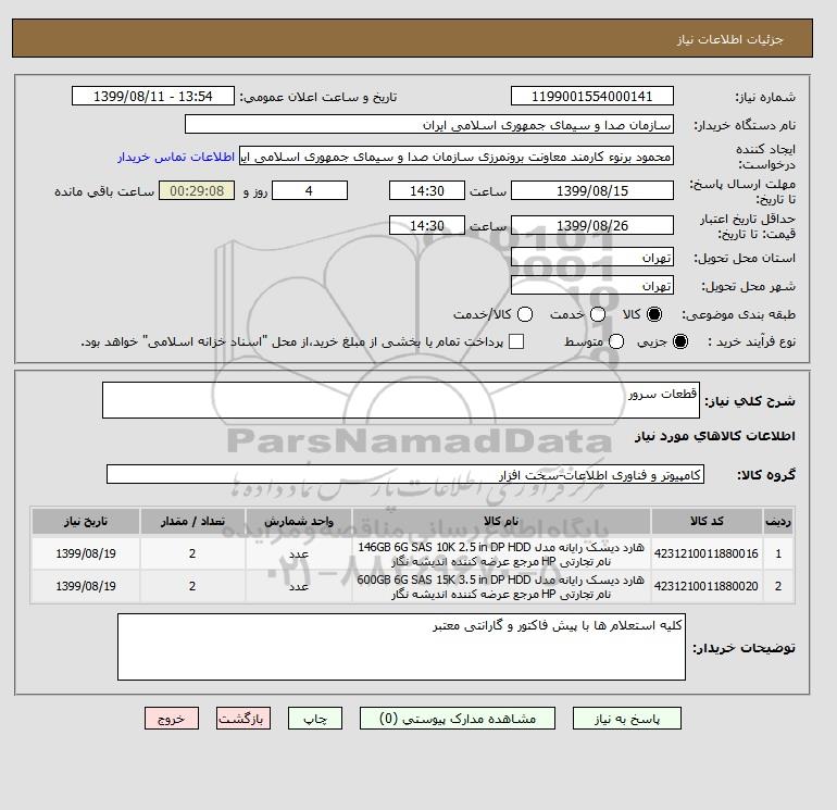 نام دستگاه خریدار:سازمان صدا و سیمای جمهوری اسلامی ایران
