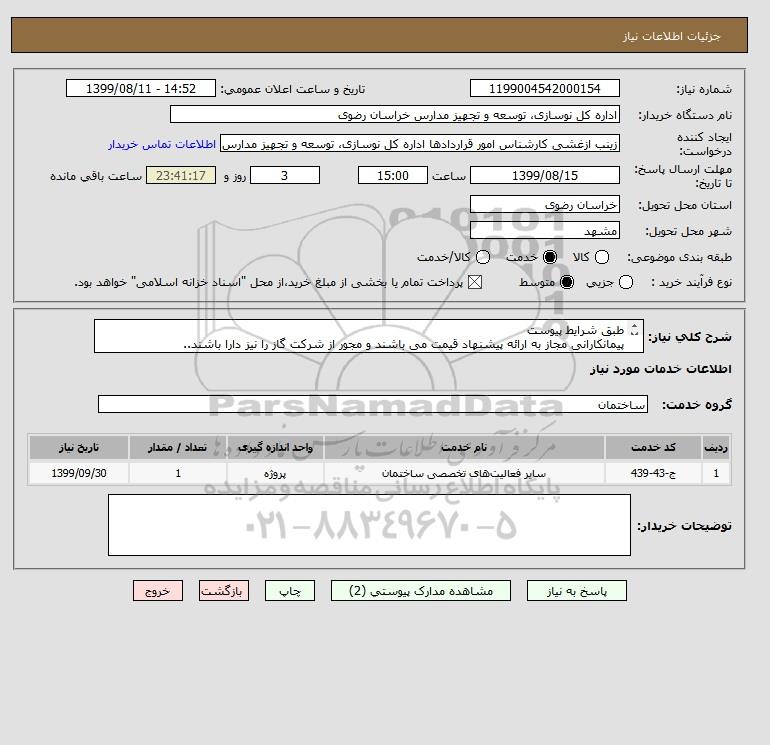 پیمانکارانی مجاز به ارائه پیشنهاد قیمت می باشند و مجور از شرکت گاز را نیز دارا باشند..