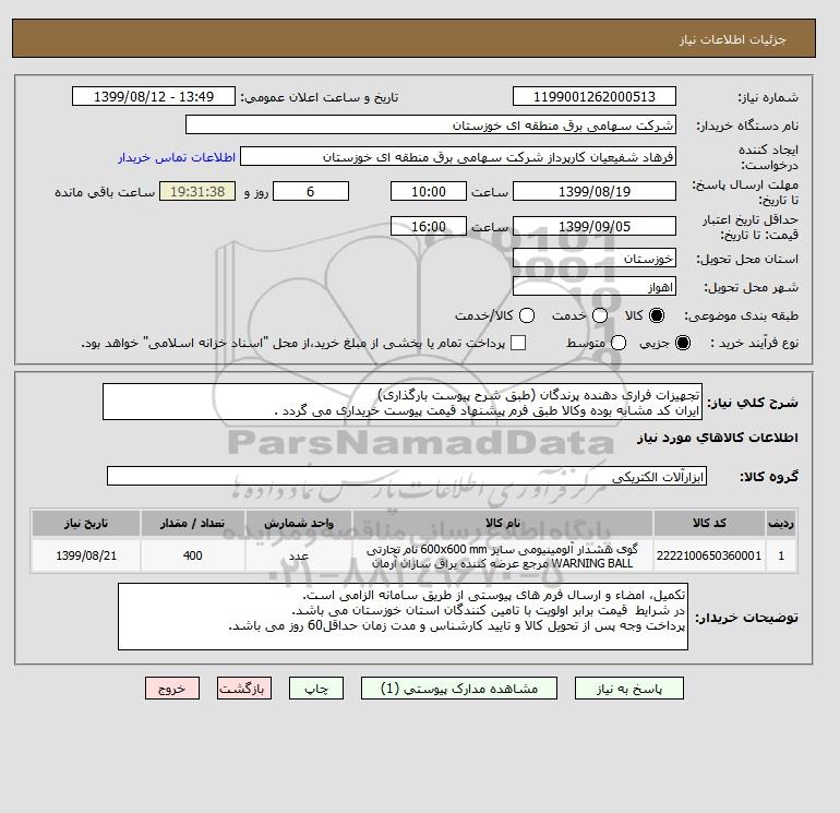 نام دستگاه خریدار:شرکت سهامی برق منطقه ای خوزستان