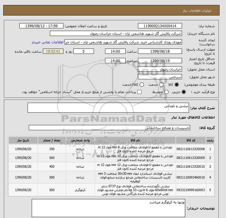 نام دستگاه خریدار:شرکت پالایش گاز شهید هاشمی نژاد - استان خراسان رضوی