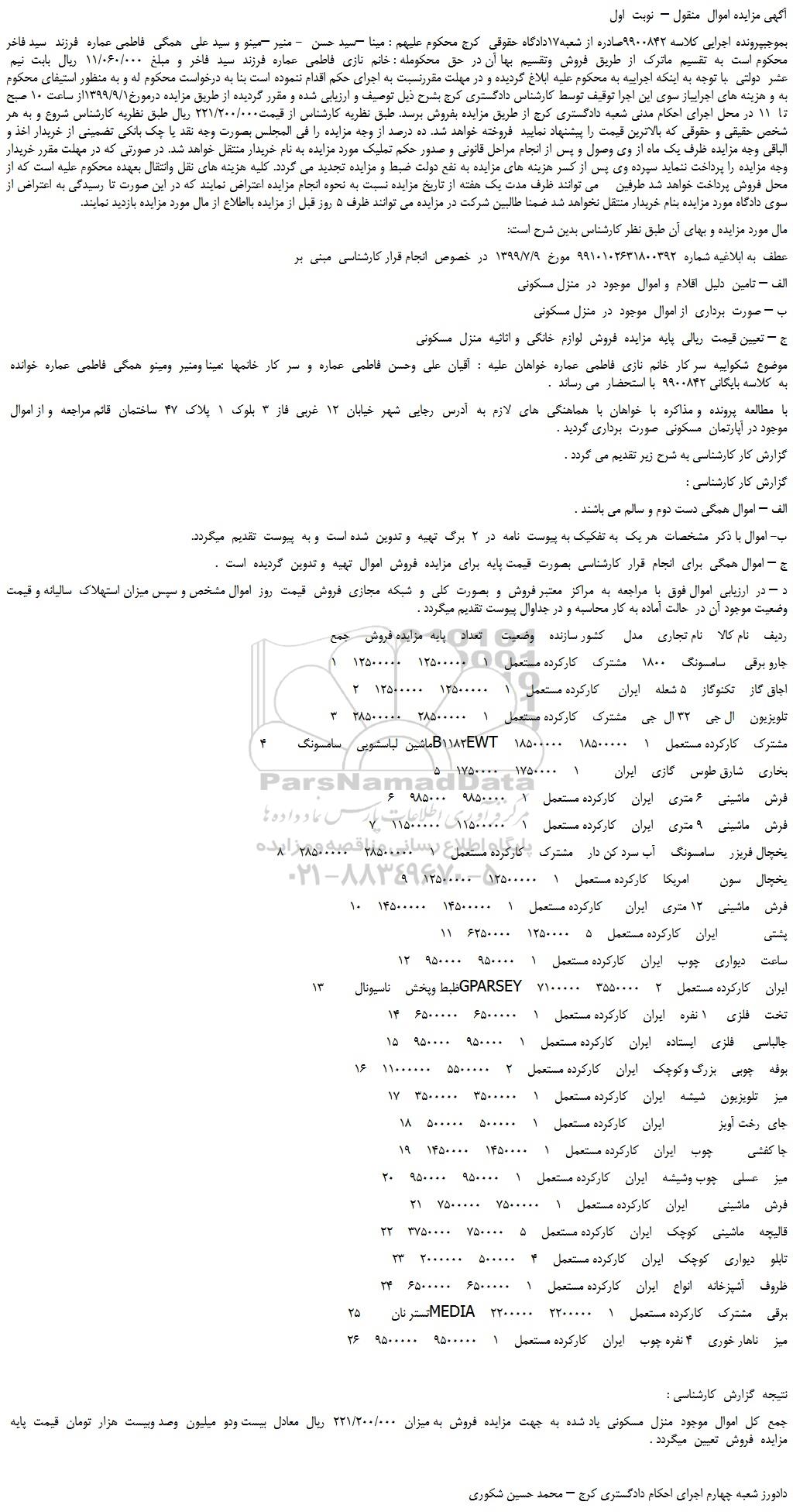 ج – تعیین قیمت ریالی پایه مزایده فروش لوازم خانگی و اثاثیه منزل مسکونی