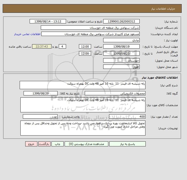 نام دستگاه خریدار:شرکت سهامی برق منطقه ای خوزستان