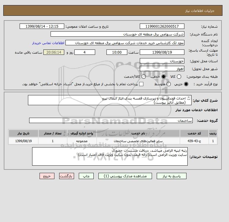 شرح کلی نیاز: احداث فونداسیون و زیرسازی قفسه بندی انبار انتقال نیرو