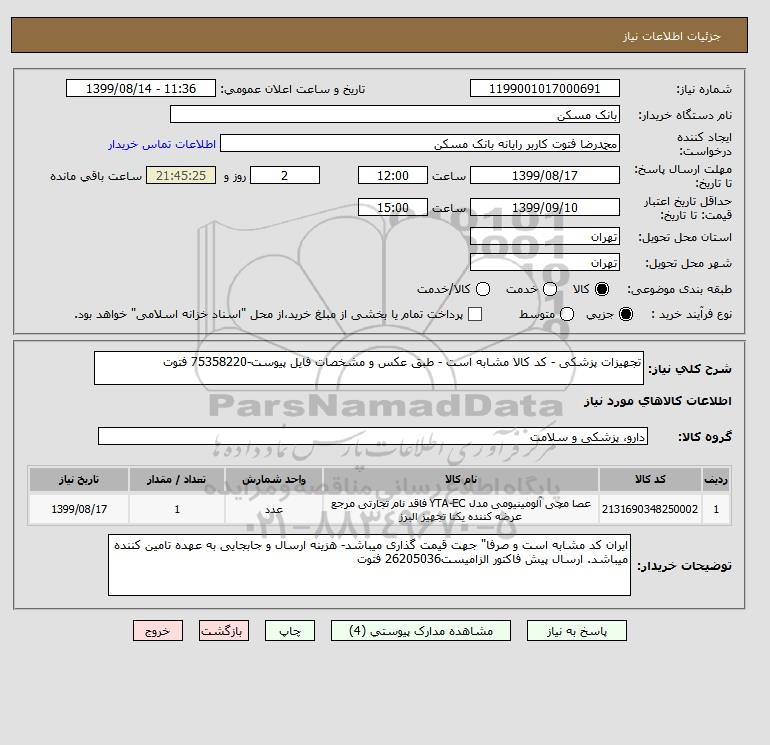 شرح کلی نیاز: تجهیزات پزشکی - کد کالا مشابه است - طبق عکس و مشخصات فایل پیوست-75358220 فتوت