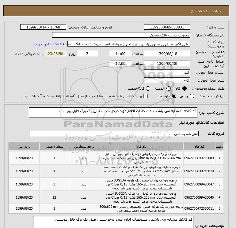 نام دستگاه خریدار:مدیریت شعب بانک مسکن