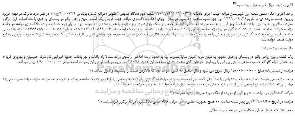 "آگهی مزایده اموال غیر منقول نوبت سوم"