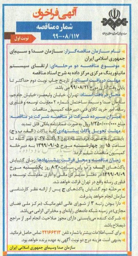 - نام سازمان مناقصه گزار: سازمان صدا و سیمای جمهوری اسلامی ایران