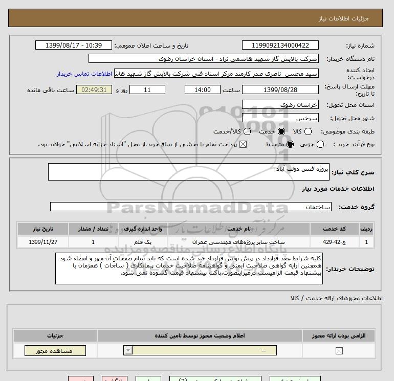 نام دستگاه خریدار:شرکت پالایش گاز شهید هاشمی نژاد - استان خراسان رضوی