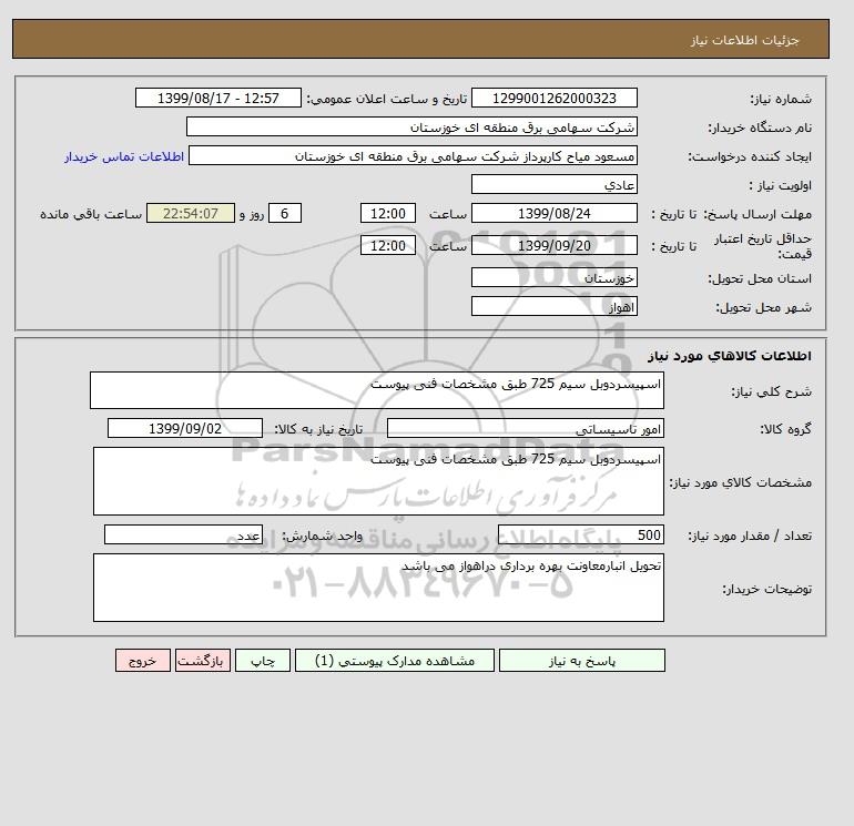 نام دستگاه خریدار:شرکت سهامی برق منطقه ای خوزستان